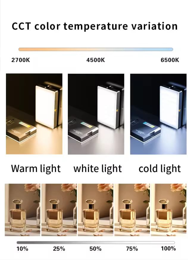 - Brillo y temperatura ajustables: 10 niveles de brillo y un rango de temperatura de color de 2700K a 6500 K.