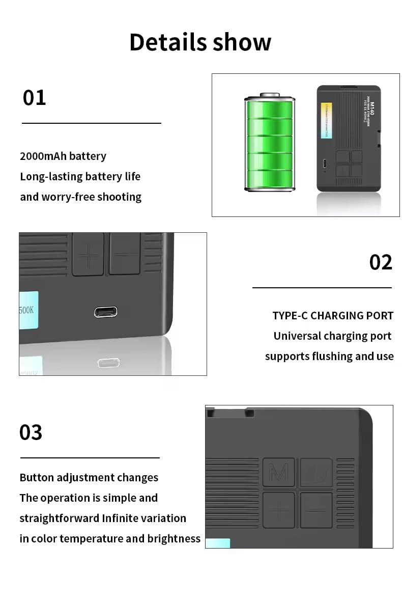 Flash Luz Led para Celular, computadoras portátiles recargable, Selfie Luz de relleno con Clip.